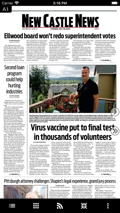 - View articles as they were written and edited for New Castle News print edition.