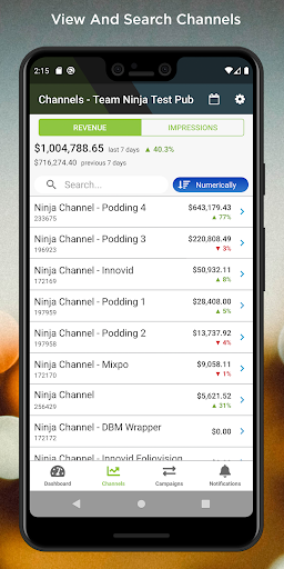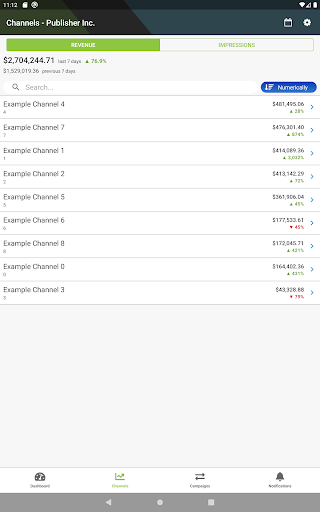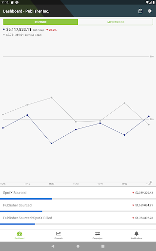 - View campaigns by impressions and revenue to easily drill down and understand each campaign's key performance indicators.