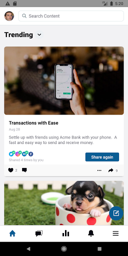 Sprinklr Extend is your new home for company content and employee advocacy. With easy access to the latest blog posts, company news, and more, you'll be able to easily share engaging content with your social networks. You will also have opportunities to upload your own content to be featured on the site.