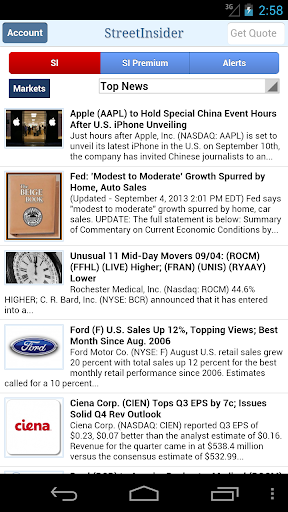 StreetInsider.com's free app puts breaking, actionable stock market news at your fingertips. Get instant access to Wall Street's top analysts and thinkers. Set up custom alerts to track news on your stocks (i.e. GOOG) and other key market areas (i.e. Mergers). Take the experience to the next level with SI Premium.