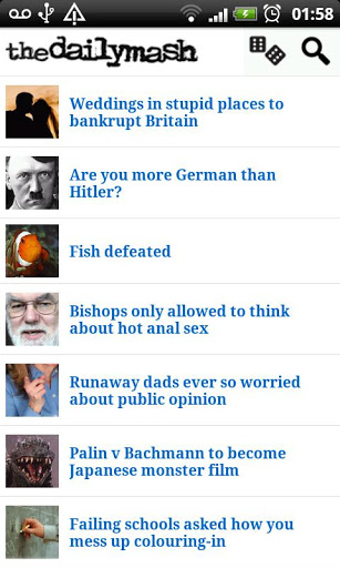 * The entire Mash archive. Every single story the Daily Mash has ever written, available for you to finger at will.