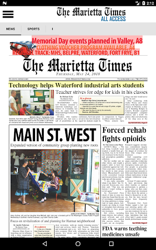 Stay on top of news from Marietta and surrounding areas by receiving the full print version of The Marietta Times on your Android device. Every page of every edition is delivered to your device. The Marietta Times is the best source for local and national news, sports, weather and features in the Marietta and Washington County area. Download the app to view the printed pages of the newspaper or read headlines and stories along with related photos in a built-in story viewer.