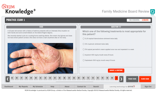 You must first register online for the free Pain Management and Opioids module to set up your login credentials. Additionally, this app complements the online version of NEJM Knowledge+ Family Medicine Board Review. Customers can use this app to log into their personal account for the length of their purchase term. The experience on the tablet mirrors the full functionality of the desktop. The experience on the smartphone is optimized for the small screen and contains all the adaptive learning questions along with Recharge, Shuffle, and the Score Report.