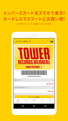 ・TOWER RECORDS ONLINEのアカウントでログインすると、スマートフォンでメンバーズカードを表示できます。