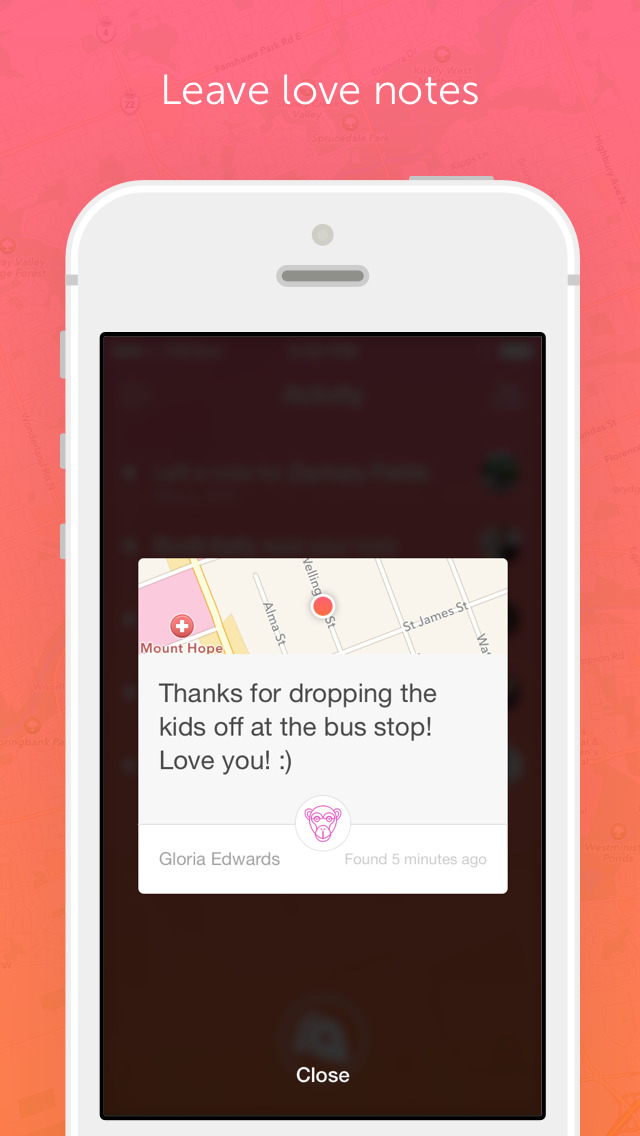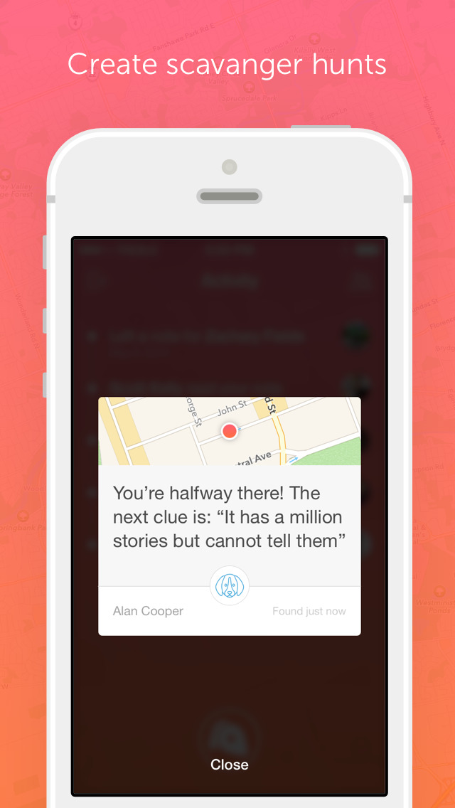 - Automatically receive hidden notes from friends when you arrive at a location where a note has been left.