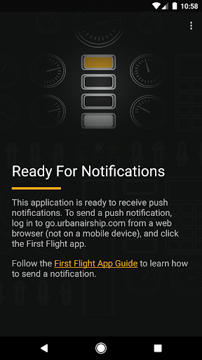 1st Flight is a demonstration app for Urban Airship Engage. It is the fastest, easiest way to try Urban Airship Engage and send personalized app messaging to increase engagement and user retention. Use 1st Flight to create interactive push notifications, in-app messages, and rich pages, including deep-linked pages, social sharing, and more. This ready-to-use app lets you see how those messages appear—on your own Android device!