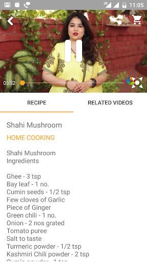 Videos contain ingredients, recipe and step by step instructions from our host. Users can search for recipes using the search option on the app or browse and choose from the playlist.