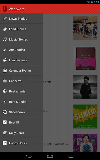 (Display) Arts, Best Of, Calendar, Movies, Promotions, Music, Restaurants, Home, News. (Mobile) Mobile Site: News, Events, Food, Music, Blogs, Slideshow, Film, Best Of. Mobile App: Restaurants, Calendar, Music, Slideshows, Concerts, Blog, Deals
