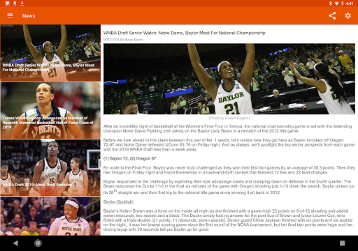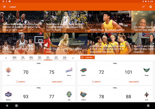 The WNBA Android phone and tablet app is your official destination for news, scores, stats, live games, and more!