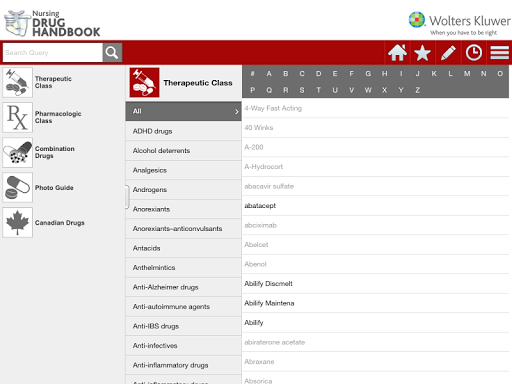 • Fast and easy search via the Search Bar or by category (Therapeutic/Pharmacologic