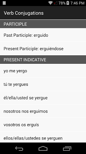 • Conjugation of Spanish and English verbs, all persons & tenses.