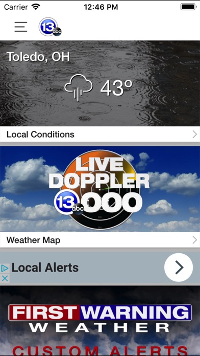 Get 13abc’s Doppler 13000 HD precision radar on your mobile device free! This is the exact same technology and radar you trust on television - it’s the only LIVE, local radar in northwest Ohio and southeast Michigan. The app is updated continuously and allows you to track right down to the street where you live, or your favorite golf course.