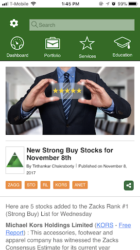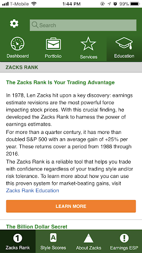 The content for this application is provided by Zacks.com and offers access to the proven Zacks Rank—and its average gain of +26% per year—and Zacks’ proprietary research for trading success while on the go.