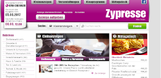 - Key DifferentiatorWhy advertise online at the Zypresse? Every day there are more than 5,700 visits to our site. Advertisements, events, lunch offers, etc. are called by users, who are consciously looking for offers and services. Advertising in such an environment is ideal. When you advertise on www.zypresse.com, you have the assurance that each visitor spends an average of 5 minutes on the website, and accesses over 8 pages . This results in a value of approximately 1.3 million pageviews per month - and thus a platform on which your advertising is strongly perceived. The majority of the visitors are moving upwards in the age group of 20 years. This is the consuming group that you can apply specifically. By the division of the page in main rubrics (eg real estate, jobs, travel & leisure etc.) you can switch your targeted advertising . This is how you reach exactly the people who are looking for your product or service. www.zypresse.com is one of the 7,000 most important websites in the whole of Germany. But that is not good enough for us. We are constantly working on the further development of the site . There are new content to without proven disappears. We know that the attractiveness of the site affects the success of your advertising.