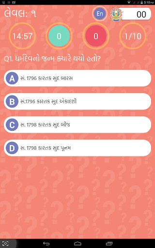 We have Gujarati and English questions, go to settings and select the lanauge you like.