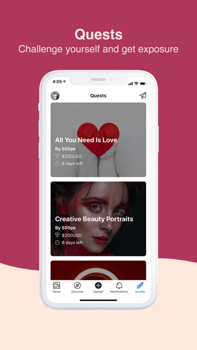 Upload your best work to see if it will be popular with our network of talented photographers. Push yourself to beat your ranking and define your style with every photo you share. Your work could even make it to Editors' Choice—our picks of the best photos on the platform. Challenge yourself with Quests—photo contests to test your skills and get recognized for your work!