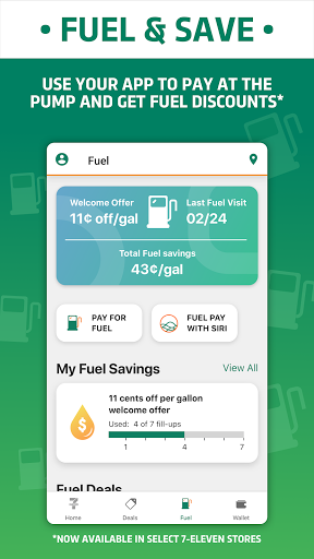 Fill up on gas for less. On your first 7 trips you'll save 11¢/gal. After that you'll receive everyday savings of 3¢/gal*. Check the 'Find a store' section and the 7-Eleven app will filter fuel loyalty locations near you.