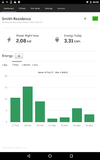 Plant Viewer for mobile empowers monitored solar power system owners on-the-go access to energy generation information from their personal Android Device. Homeowners can track energy generation on their home while portfolio managers can see each plant they have under management. Plant Viewer for mobile works with Plant Viewer, Aurora Vision and EasyView login accounts to provide a simple and fully integrated solution to the full line of Aurora Vision monitoring solution.
