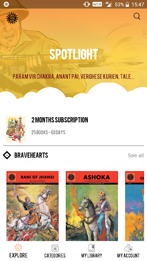 With the ACK Comics app you can now instantly purchase single titles or subscribe to read hundreds of Amar Chitra Katha digital comics. Our brand new subscription feature gives you access to your favourite comics at less than quarter the price. You can enjoy our subscription plans that start as low as $30 or INR 1999 for full access of 300+ titles!