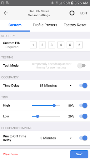 The VLP App with flash programming technology from Acuity Controls effortlessly configures Sensor Switch occupancy sensor and photocontrols. Set occupancy time delay, trim values, photocontrol options and more with this visually intuitive tool. Sensor customization has never been easier.
