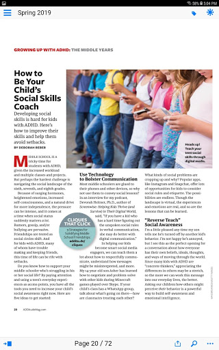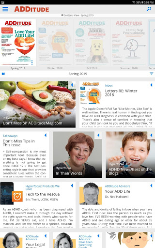 The ADDitude magazine app includes all of the articles in each issue. The issues within the app are available for download and can be read anytime, even offline.