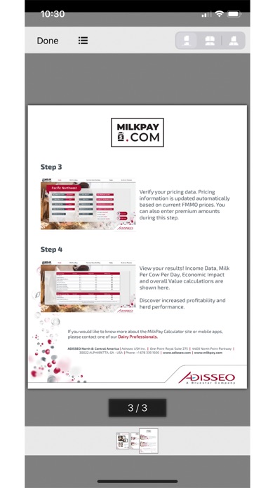 The Milkpay calculator can be updated automatically for the latest component prices, somatic cell count premium, and producer price differentials. With these current values, the financial value of the milk components can be quantified to determine milk revenue. Changes in components and feed costs can be incrementally evaluated. The cost of the feed changes can also be included in the calculations to quantify Income Over Feed Cost (IOFC) and Return on Investment (ROI) from these changes.
