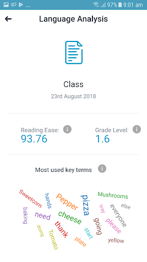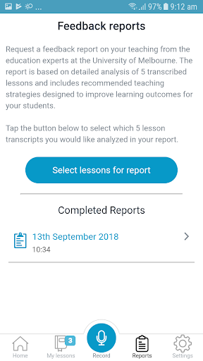Using the Visible Classroom app, you can record your lessons and request to have them professionally transcribed to unlock analytics and personalized feedback reports from teaching experts at the University of Melbourne who review your lesson content. You’ll receive real insights into your teaching style and be provided with recommended teaching strategies to improve the outcome for your learners.