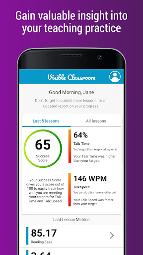 Visible Classroom is an app that empowers teachers to improve their teaching by providing talk time and talk speed metrics to see their impact in the classroom.