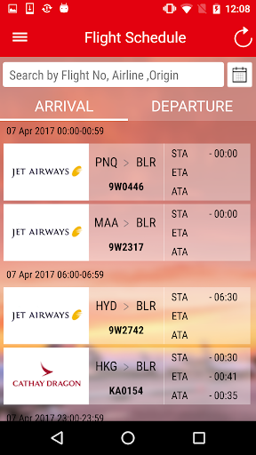 1. View the Flight Schedules with option to search by Flight Number, Airline or Destination.