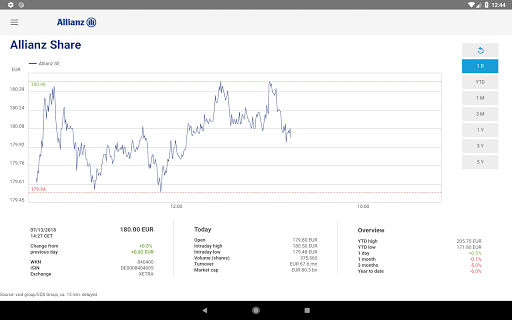 The app also shows current charts on the development of Allianz's shares, share price data on peers and indices as well as prices and bond terms and conditions for Allianz bonds.
