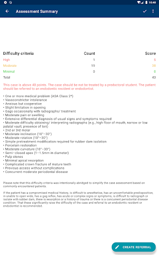 • Above 40 points: The case should not be treated by a predoctoral dental student. The patient should be referred to a graduate student or endodontist.