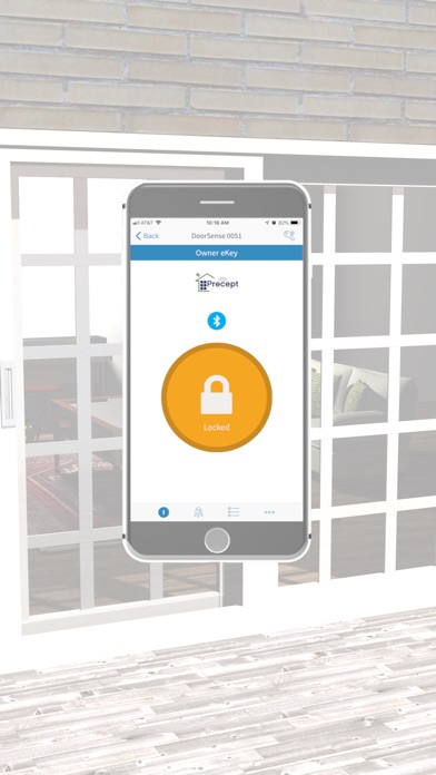 Precept™ Home platform app will provide monitoring and control of all Precept™ door locks, Precept™ equipped windows, Precept™ skylight operators and other Precept powered products via secure Bluetooth and/or Wi-Fi connection. The home owner will interact with all of the Precept™ smart home devices from one app on their iPhone. The app is used for installation, initial setup, locking & unlocking, monitoring, sending, disabling and deleting eKeys; viewing history of lock activity; setting up other configurable features and options of the Precept™ lock equipped windows and doors.