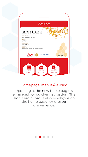 This app allows you to get quick access to the health and medical services when you need it. You can enjoy cashless visits to the network of panel GP and Specialist clinics by using the Aon Care eCard (available upon login). You can also present the Aon Care eCard at our retail and lifestyle partners to enjoy benefits.