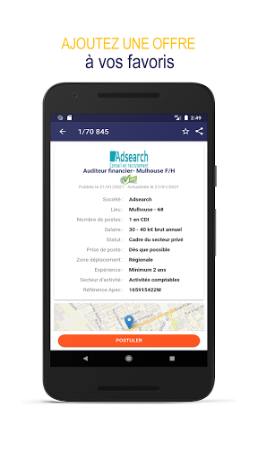 - Postuler en quelques clics où que vous soyez sans quitter l’application.