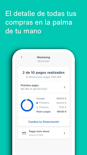 En una frase: es una App para pagar con flexibilidad y planificar tus compras a plazos de forma segura desde el móvil.