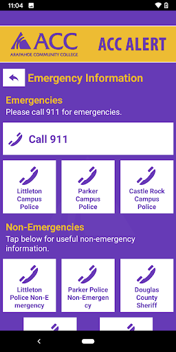 - Emergency Information: Contact the correct services for the Arapahoe Community College area in case of an emergency or a non-emergency concern