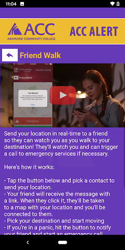 - Safety Notifications: Receive instant notifications and instructions from Arapahoe Community College safety when on-campus emergencies occur.