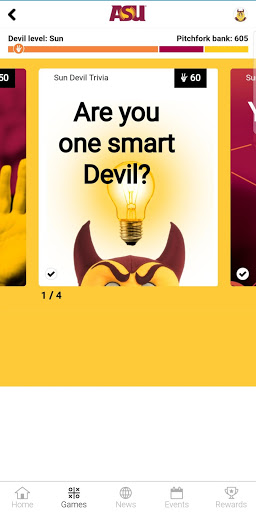 Want to earn rewards faster? By using the app, you can work toward upgrading your Sun Devil Level. The more Sun Devil Reward Pitchforks you earn, the better your reward! No matter how many Pitchforks you redeem, you’re advancing toward the next Devil Level.