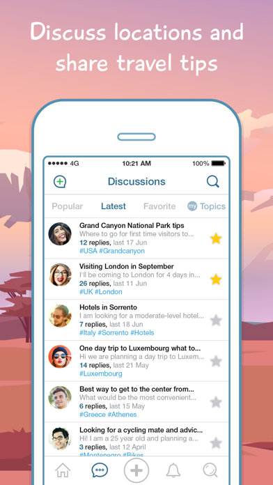 - gather opinion and travel tips from other app users through Discussions: ask questions about places or share your own experiences