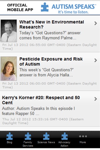 Autism Speaks official app provides access to blogs, latest news and on the go content from www.autismspeaks.org