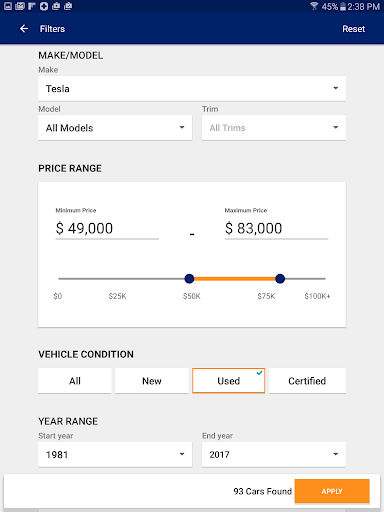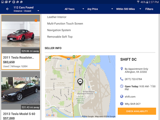 • Contact a seller by phone, text, or email directly from a vehicle listing