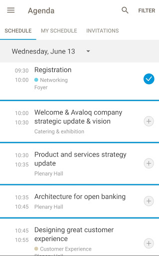 * Agenda - view the full agenda and related information (session time, room name, speaker info, etc)