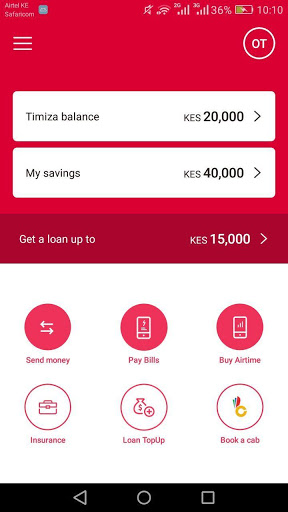 offered on Timiza. For example, Deposit cash, Purchase airtime, Pay your utility