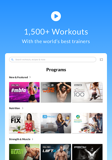 • Select from 1,500+ strength-training, cardio, yoga, dance, mixed martial arts, and other workouts designed to fit your goals and preferences