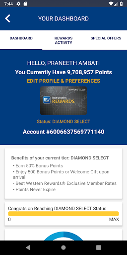 Best Western to Go!® makes it easy to make reservations for any of our 4,100 hotels worldwide, track details of your trip, and share your trip details with friends and family. Three distinct views make browsing through search results a breeze. You can see hotels as images, in a list, or on a map. You can also sort and filter the hotels based on your needs. Best Western Rewards members will find their account information at their fingertips. Current point balance, recent activity, upcoming stays and more are all conveniently organized into an intuitive dashboard.