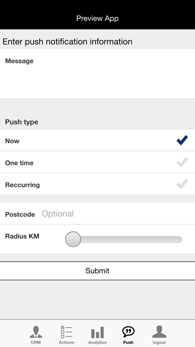 The Betsol CRM App allows businesses who have built an iPhone App, using the Betsol Business App CMS, a simple way to manage customer App actions, send and schedule Push Notifications and review App Download Stats.