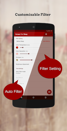 Protect your eyes, reduce sleeplessness, and bring relief for headaches with our blue light filter app! Screen for Sleep helps you sleep easily and helps you relief migraines and chronic headaches that are caused by blue light from your phone screens. Aside from activating the blue light filter, you can also set for low light by adjusting the brightness and dimness for your screen. Use our screen protect & sleep light app for your eyes now!