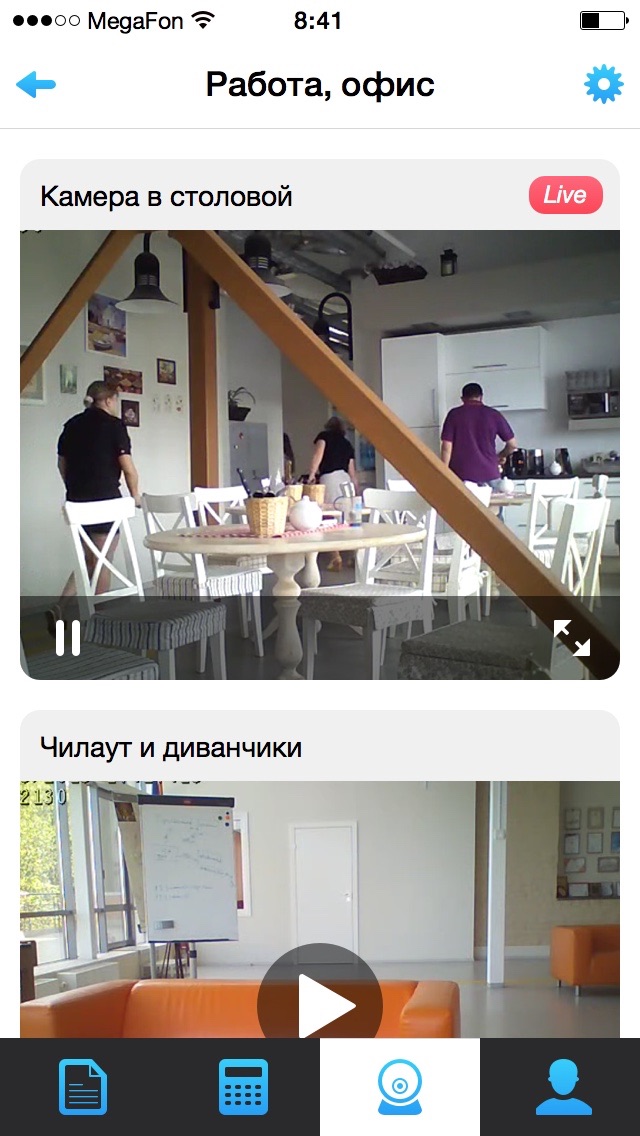 — смотреть живое видео с IP-камер, установленных на объекте (через Wi-Fi или LTE);