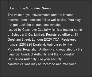 Cazenove Capital is the wealth management business of Schroders plc in the UK and Channel Islands. We offer personalised discretionary and advisory investment services to a broad variety of clients, as well as wider wealth management services such as wealth planning, cash administration, deposit-taking and lending.