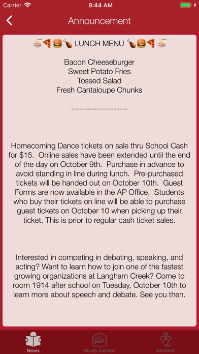 This brand new app Langham Creek helps you easily check lunch menu, grades, school news and school calendar. There are 3 tabs.